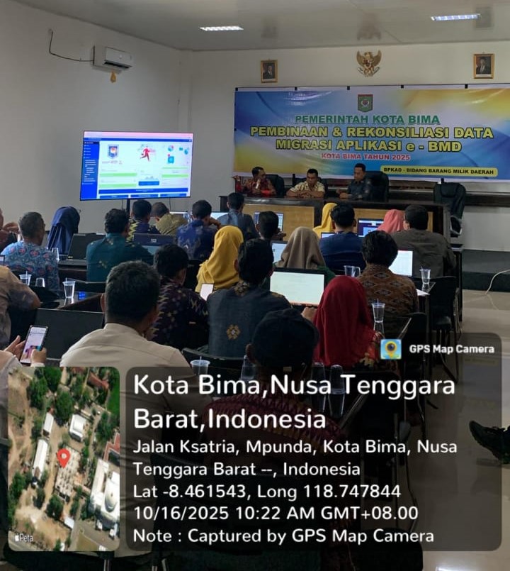 Dalam rangka meningkatkan pelayanan penatausahaan Barang Milik Daerah Kota Bima menggunakan aplikasi e-BMD sesuai amanat Peraturan Menteri Dalam Negeri Nomor 47 Tahun 2021 tentang Tata Cara Pelaksanaan Pembukuan, Inventarisasi, dan Pelaporan Barang Milik Daerah, maka Sekretariat Daerah BPKAD Bidang Barang Milik Daerah menggelar acara Rapat dan zoom meeting dengan Tim IT Kemendagri Republik Indonesia untuk rekonsiliasi Data Migrasi Aplikasi e-BMD Saldo Audites 2024 (16/10). Kegiatan tersebut dihadiri oleh Bendahara Barang  mewakili Kepala Dinas Sosial Kota Bima.